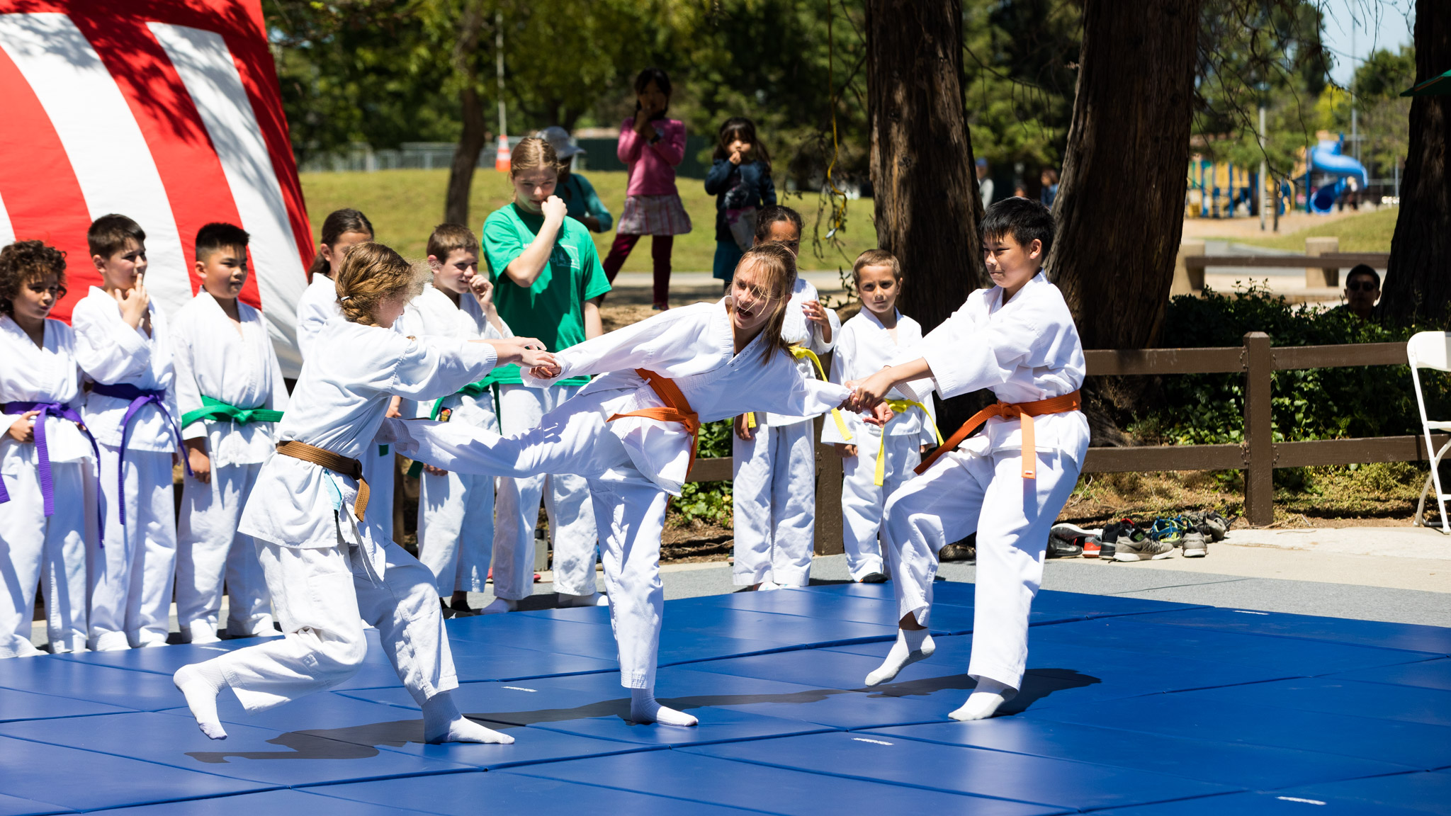 The Kodenkan Jujitsu School participated in the annual Cupertino Cherry Blossom Festival by performing a two-part demonstration: