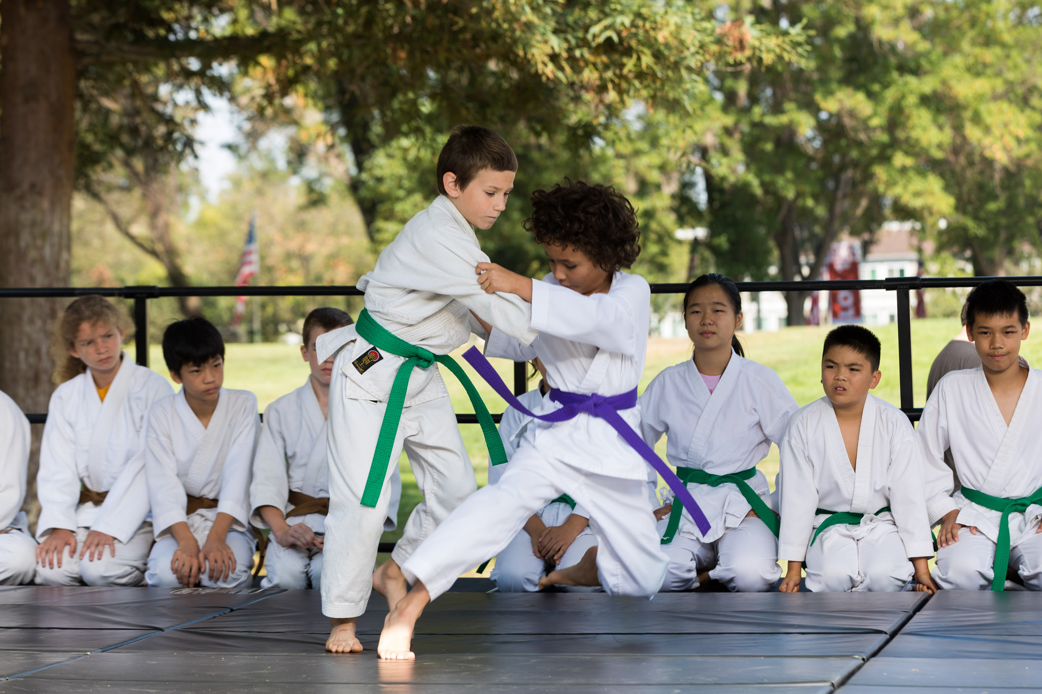 The Kodenkan Jujitsu School’s kids class gave a demonstration at the 2017 annual Santa Clara Art and Wine Festival at Central Park. The kids demonstrated self defense techniques including escapes, throws, joint locks, control holds, and more!