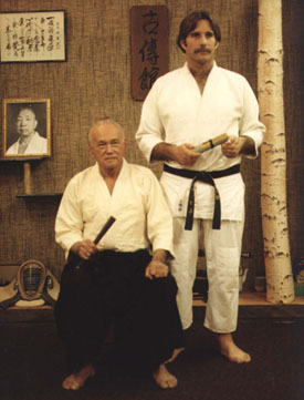 Prof. Sig Kufferath and Prof. Tony Janovich founded the Kodenkan in 1973. This photo shows Prof. Janovich receiving his scroll from Prof. Kufferath. Janovich is the only student to receive an instructors scroll from Prof. Kufferath in the last 40 years.