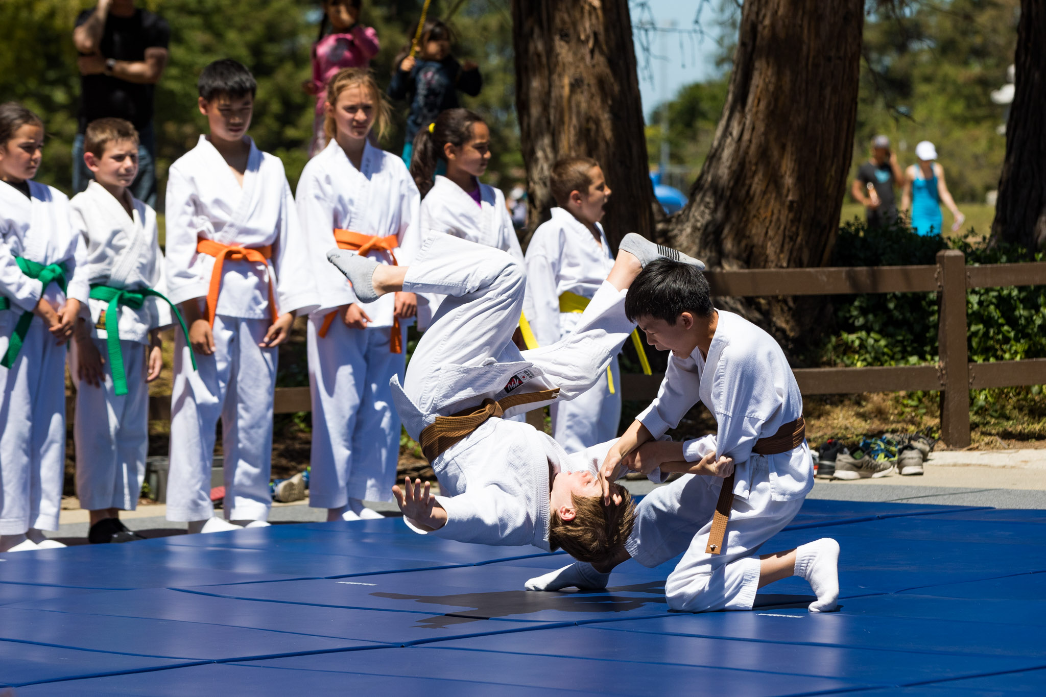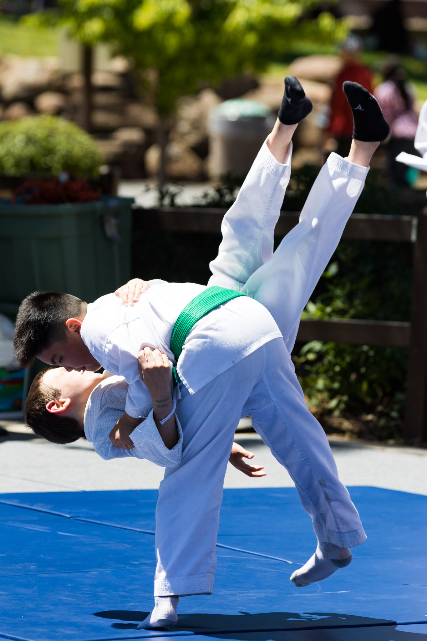 The Kodenkan Jujitsu School participated in the annual Cupertino Cherry Blossom Festival by performing a two-part demonstration: