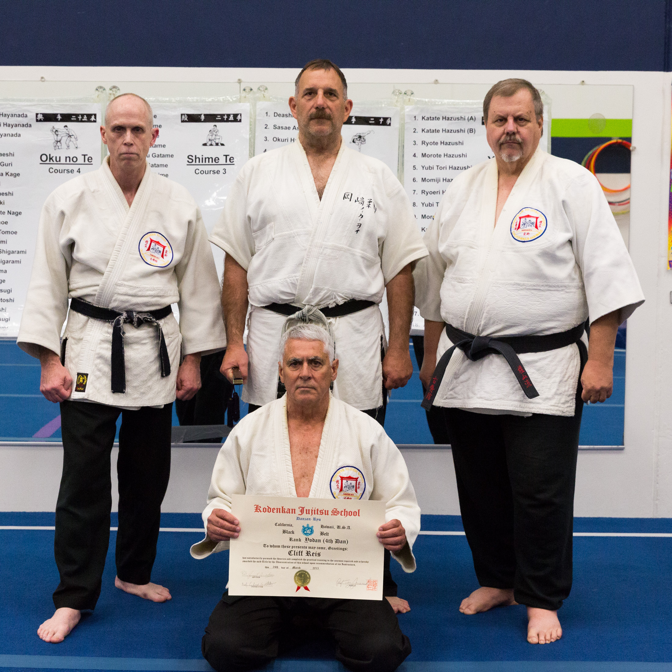 Sensei Cliff Reis promoted to Yodan April 23, 2015 2200 × 2200 April 2015 Kodenkan Promotions Sensei Cliff Reis, promoted to Yodan